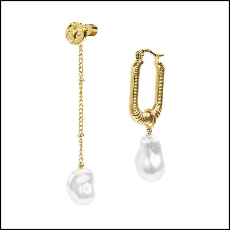 Orecchino pendente con catena e perla irregolare removibile